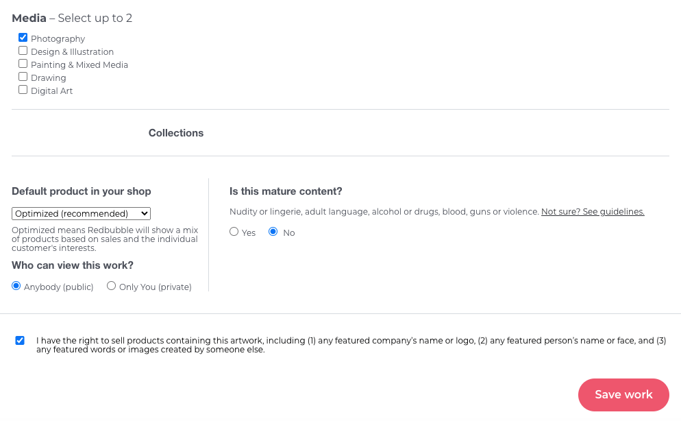 How to create a collection in Redbubble