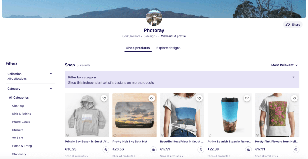 To make your profile even more complete, I would recommend setting up collections in Redbubble. Collections are customisable categories that you can create based on your own designs. They appear on your shop page and help buyers navigate your designs.