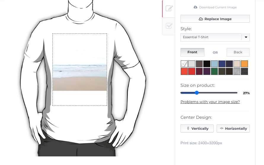 1. Click through each of the products to ensure that they are enabled for your design. You may need to click the Edit button to resize your design, add a different colour background or create a pattern.