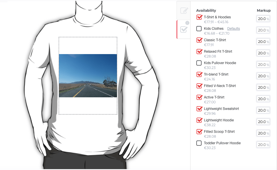 1. In the Edit area, you can also change the markup from the default 20%. Redbubble works on a cost price x your markup = final product price model.